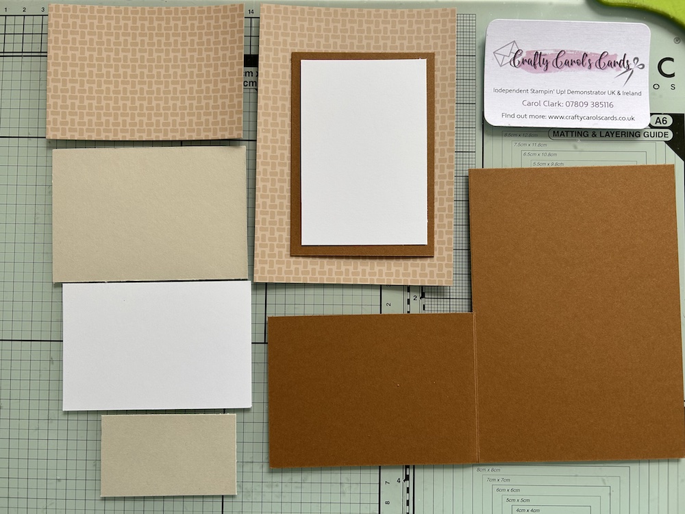 • Pecan Pie card base 21cm x 14.8cm scored at 10.5cm (8½” x 5½” scored at 4¼”)