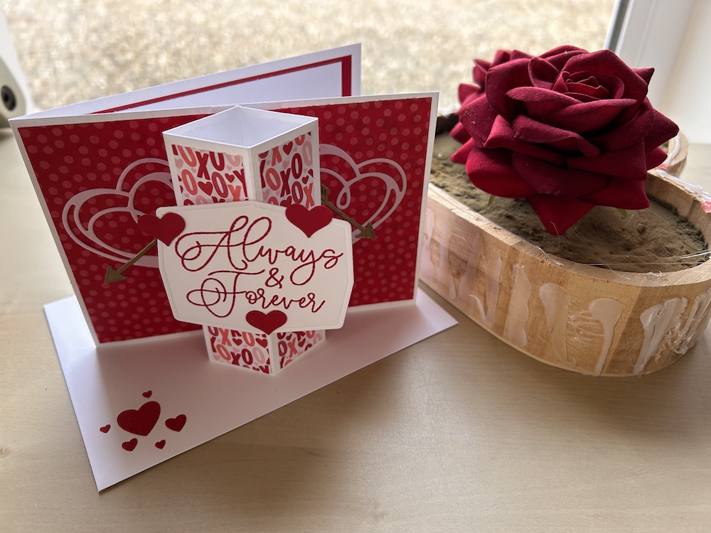 Because the stamp set I used for my floral card is not available until March, I have added the products for the Valentine’s Day card below.