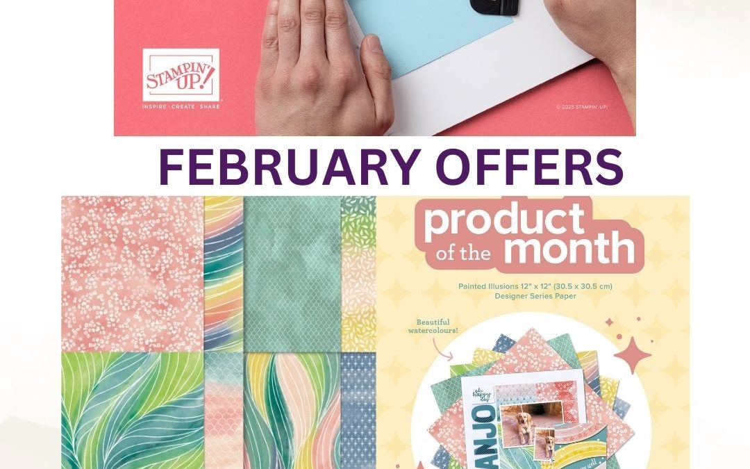 New month and new Product of the Month February offer. This month it is a fabulous set of Designer Series paper: Painted Illusions 12″ x 12″ (30.5 x 30.5 cm) Beautiful watercolours and whimsical patterns make up this one-of-a-kind paper. Make a wide variety of projects with this paper that will surely dazzle!