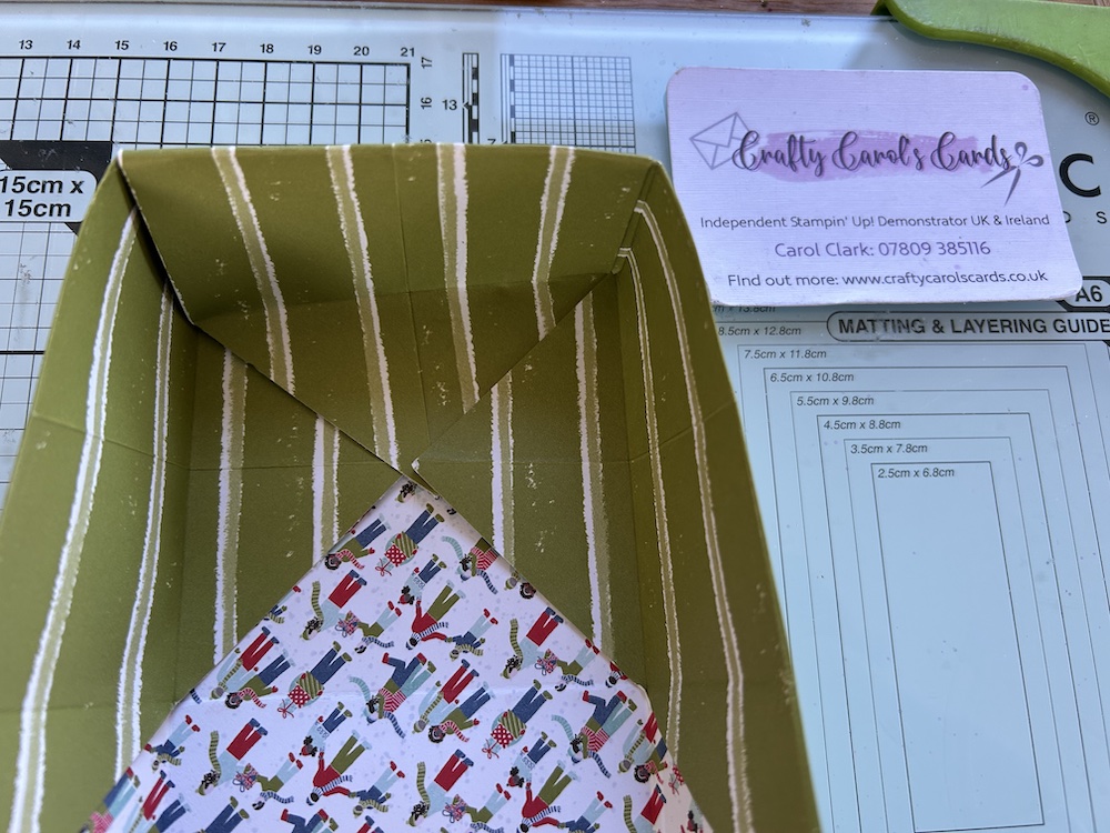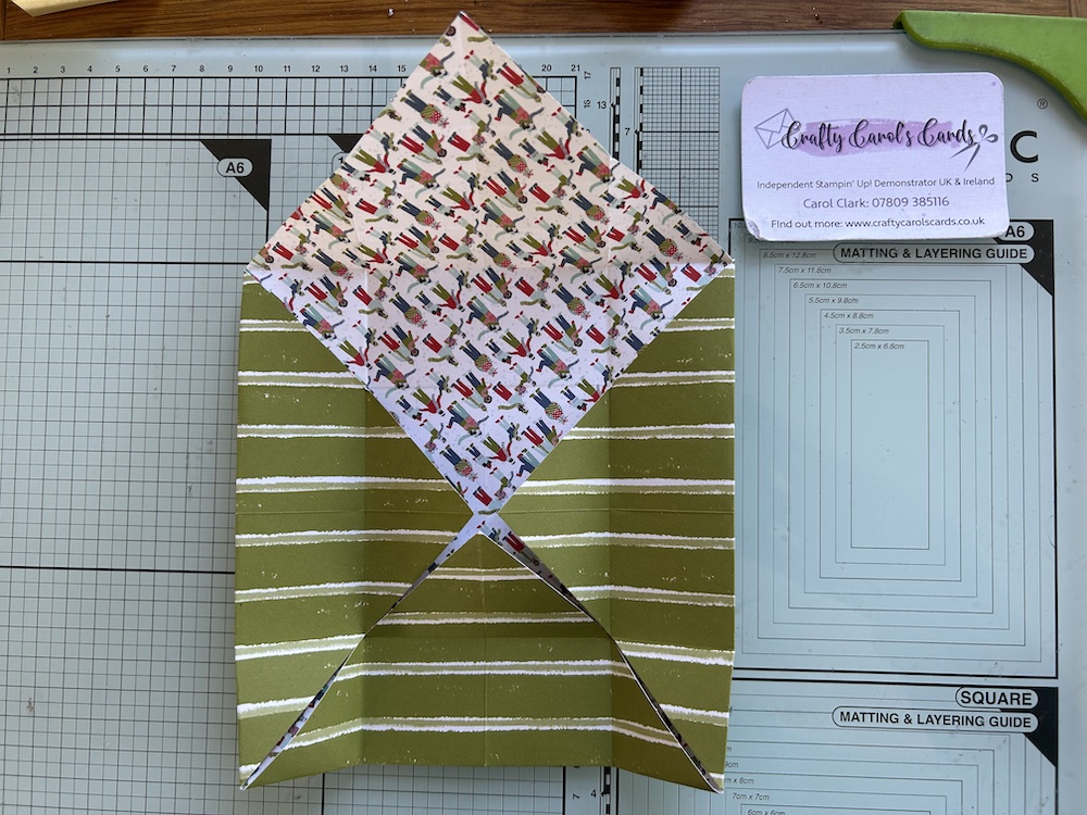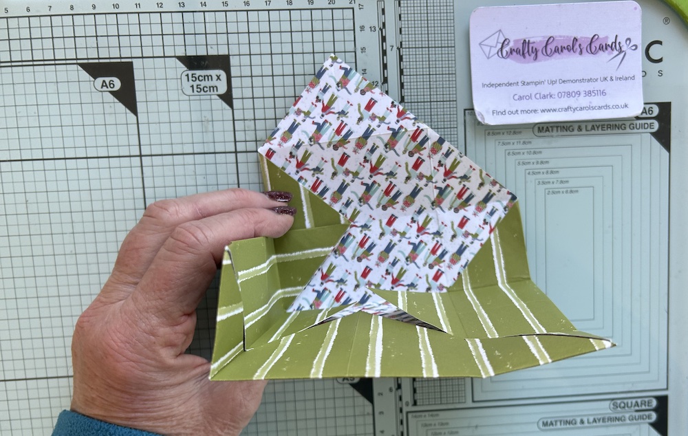 Step 9: Now bring the box side up and fold in – this forms a triangle
