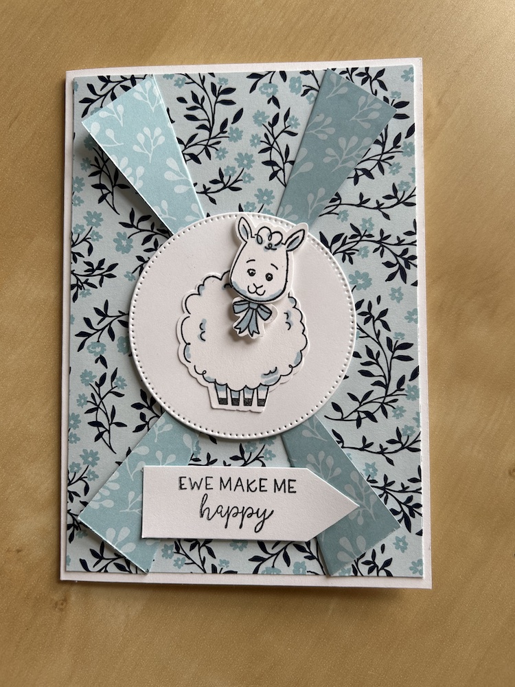 Add the circle to the centre front of the card using dimensionals. Add your sheep on top using a dimensional for the head.